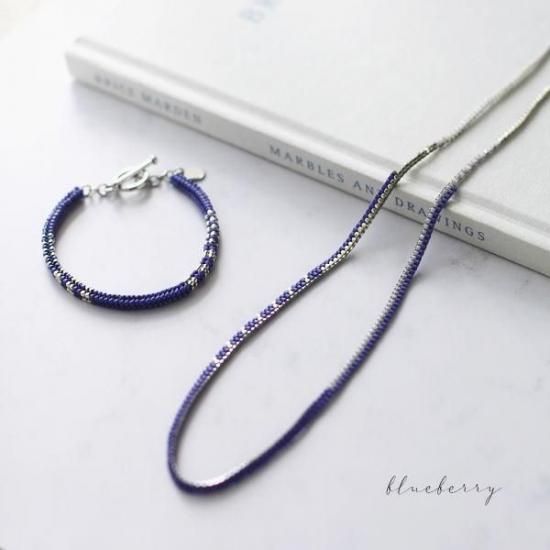 ●ビーズステッチのチェーンネックレス(ブルーベリー・レモンソルベ)